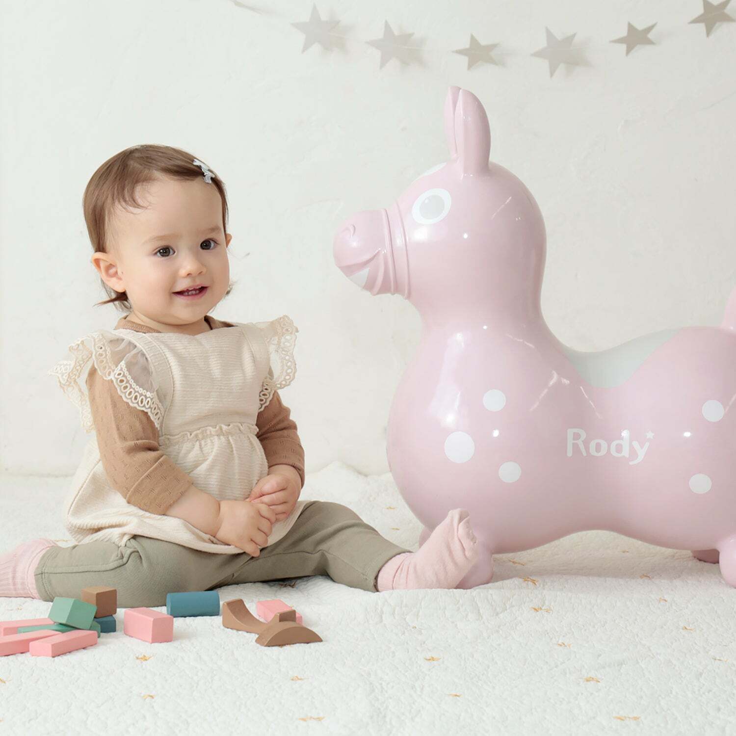「nino」在跳跳馬的故鄉義大利,指的是可愛的孩子,從而衍生出跳跳馬新系列的名稱。Rody nino nino特色在於LOGO後端有一顆小星星的標誌,象徵著跳跳馬與爸爸媽媽們一齊守護孩子的健康成長,並將此心願刻印在身上、永遠不忘。